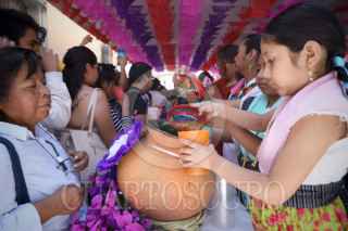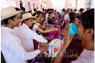 OAXACA DE JUÁREZ, OAXACA, 13MARZO2026.- Este cuarto viernes de cuaresma se celebró en Oaxaca el día de la Samaritana, una tradición única en la que se regalan aguas frescas en espacios públicos, negocios, escuelas y demás. Esta celebración rememora el pasaje bíblico que narra el encuentro de Jesús con una mujer de Samaria quien le ofrece de beber agua. Desde hace años, las autoridades han invitado a los ciudadanos que participen en la celebración a llevar su propio vaso a fin de evitar el uso de desechables. FOTO: CAROLINA JIMÉNEZ MARISCAL/CUARTOSURO.COM