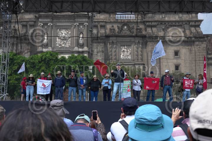 CIUDAD DE MÉXICO, 18MARZO2026.- Maestros pertenecientes a la Coordinadora Nacional de Trabajadores de la Educación, realizaron un mitin en el Zócalo capitalino esto en el marco del Paro Nacional de 72 horas dicho contingente marcho del Ángel de la Independencia a la Plaza de la Constitución. FOTO: ROGELIO MORALES /CUARTOSCURO.COM