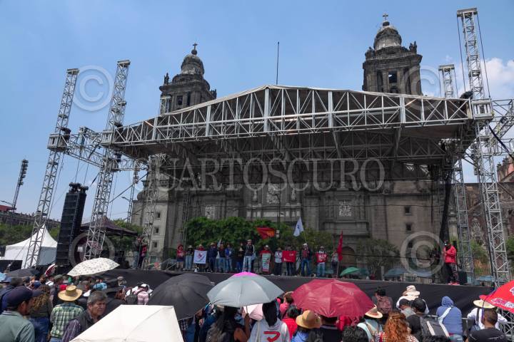 CIUDAD DE MÉXICO, 18MARZO2026.- Maestros pertenecientes a la Coordinadora Nacional de Trabajadores de la Educación, realizaron un mitin en el Zócalo capitalino esto en el marco del Paro Nacional de 72 horas dicho contingente marcho del Ángel de la Independencia a la Plaza de la Constitución. FOTO: ROGELIO MORALES / /CUARTOSCURO.COM