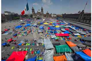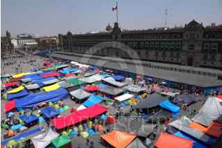 CIUDAD DE MÉXICO, 18MARZO2026.- Maestros pertenecientes a la Coordinadora Nacional de Trabajadores de la Educación, realizaron un mitin en el Zócalo capitalino esto en el marco del Paro Nacional de 72 horas dicho contingente marcho del Ángel de la Independencia a la Plaza de la Constitución. FOTO: ROGELIO MORALES/CUARTOSCURO.COM