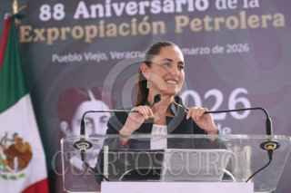 PUEBLO VIEJO, VERACRUZ, 18MARZO2026.- Claudia Sheinbaum Pardo, Presidenta de México, durante la ceremonia de conmemoración del 88 Aniversario de la Expropiación Petrolera. FOTO: PRESIDENCIA/CUARTOSCURO.COM