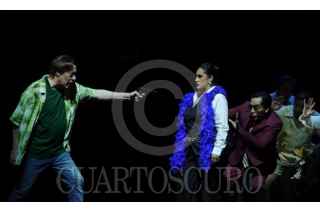 CIUDAD DE MÉXICO, 20MARZO2026.-Función de prensa de la ópera “Ascenso y caída de la ciudad de Mahagonny”, una ópera en tres actos con música de Kurt Weill y libreto en alemán de Bertolt Brecht, que narra la historia de una ciudad creada por tres criminales, en la que todo está permitido siempre y cuando los visitantes tengan dinero. La obra está construida como una crítica a la sociedad capitalista a través de una mezcla de estilos musicales, abordando la decadencia moral y el consumismo. FOTO: CAMILA AYALA BENABIB / CUARTOSCURO.COM