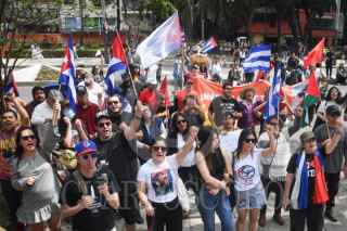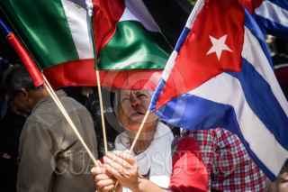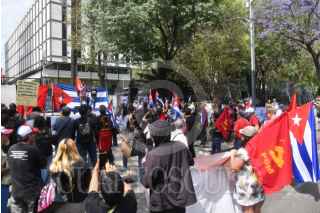 CIUDAD DE MÉXICO, 21MARZO2026.- Integrantes del Movimiento Mexicano de Solidaridad con Cuba y de la Asociación de Cubanos Residentes en México A.C. se manifestaron al exterior de la anterior sede de la Embajada de Estados Unidos en México para mostrar su apoyo a Cuba que enfrenta una crisis económica y energética derivada por las presiones políticas generadas por los Estados Unidos de América. FOTO: MARIO JASSO/CUARTOSCURO.COM