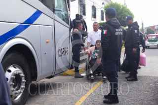 XALAPA, VERACRUZ, 24MARZO2026.- Las 229 personas identificadas como migrantes que fueron rescatadas ayer después de que los oyeran gritando por ayuda en un tráiler robado, salieron abordo de autobuses desde el Cuartel de San José en Xalapa con rumbo a la delegación del Instituto Nacional de Migración (INM) en el sur, en Acayucan. FOTO: YERANIA ROLÓN/CUARTOSCURO.COM