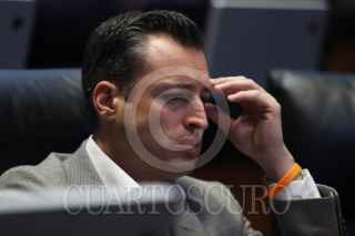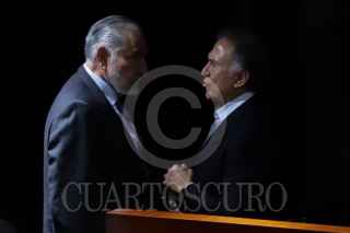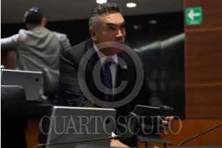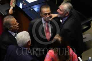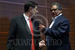 CIUDAD DE MÉXICO, 25MARZO2026.- Los senadores de Morena, Gerardo Fernández Noroña e Higinio Martínez, dialogan durante la sesión ordinaria de este miércoles donde se discutirá el Plan B electoral. FOTO: DANIEL AUGUSTO/ CUARTOSCURO.COM