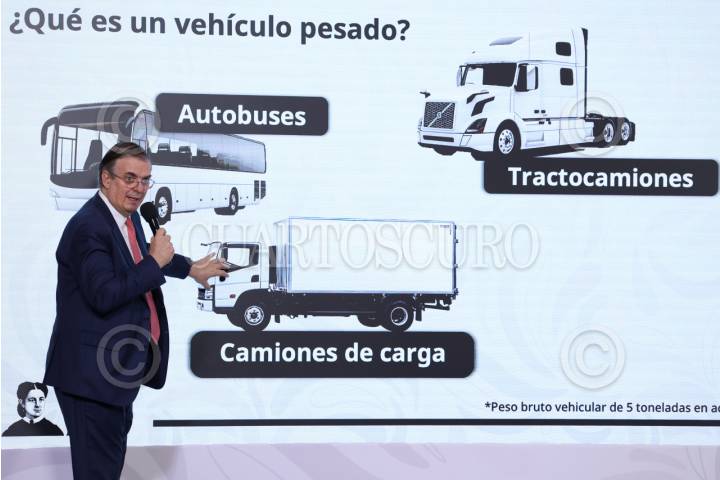 CIUDAD DE MÉXICO, 26MARZO2026.- Marcelo Ebrard, secretario de Economía, hizo el anuncio del Programa de Atención Inmediata para la Protección a la Industria de Vehículos Pesados durante la Mañanera del Pueblo en Palacio Nacional. FOTO: GALO CAÑAS/CUARTOSCURO.COM