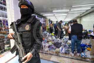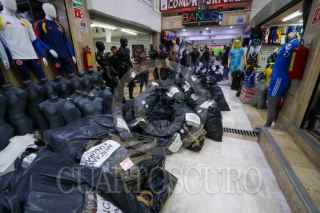 CIUDAD DE MÉXICO, 26MARZO2026.- El Instituto Mexicano de la Propiedad Intelectual (IMPI); la Fiscalía General de Justicia de la Ciudad de México, y elementos de la Secretaría de Seguridad Ciudadana, realizaron un operativo para decomisar mercancía futbolera apócrifa. En la acción fueron cateadas varias bodegas de Tepito en donde se aseguraron uniformes y balones, principalmente. FOTO: ROGELIO MORALES/CUARTOSCURO.COM