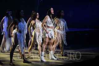 CIUDAD DE MÉXICO, 27MARZO2026.- Natalia Huerta durante la función del primer aniversario del musical "La Malinche" en las instalaciones del Frontón México. FOTO: MARIO JASSO/CUARTOSCURO.COM