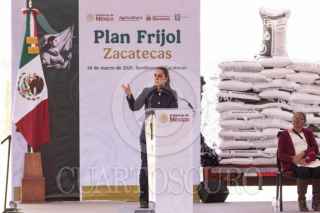 SOMBRERETE, ZACATECAS, 28MARZO2026.- Claudia Sheibaum, presidenta de México, presidio la ceremonia de inauguración de la planta “Embolsadora de Frijol Beatriz González Ortega” como parte del programa Plan Frijol. Durante el evento uno reclamos y gritos de productores quienes siguen sin ser atendidos; reclamando la corrupción por parte de funcionarios, grandes productores y intermediarios llamados comúnmente “coyotes”. FOTO: ADOLFO VLADIMIR /CUARTOSCURO.COM