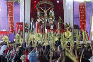 SAN ANTONINO CASTILLO VELASCO, OAXACA, 29MARZO2026.- Pobladores de San Antonino Castillo Velasco, comunidad zapoteca de los Valles Centrales de Oaxaca, celebraron el “Domingo de Ramos”. En la población, los habitantes ofrendan productos del campo, animales de corral, textiles, entre otros a la imagen de Cristo Salvador, la cual adornan para salir en procesión hacia el templo consagrado a San Antonino Obispo, en donde se realiza la celebración eucarística que rememora la entrada de Jesús a Jerusalén y con la que inicia la Semana Santa. Las ofrendas que cada habitante dona en agradecimiento por los favores recibidos en el año, son subastadas al finalizar la misa, el dinero recaudado se destina a las necesidades parroquiales. FOTO: CAROLINA JIMÉNEZ MARISCAL/CUARTOSCURO.COM