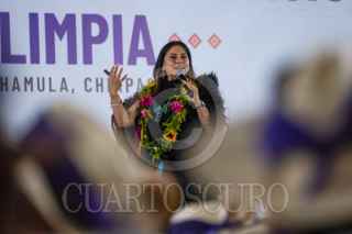 SAN JUAN CHAMULA, CHIAPAS, 30MARZO2026.- Se llevó a cabo una conferencia magistral sobre la violencia digital y el funcionamiento de la Ley Olimpia en la cabecera municipal. Frente a cientos de personas Olimpia Coral Melo contó a la audiencia su experiencia y aprendizajes en la lucha contra la violencia digital. FOTO: ISABEL MATEOS HINOJOSA/CUARTOSCURO.COM