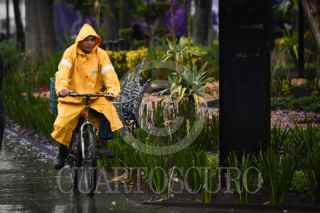 CIUDAD DE MÉXICO, 31MARZO2026.- Una mujer se protege de las constantes precipitaciones registradas esta tarde en la capital. FOTO: MARIO JASSO/CUARTOSCURO.COM
