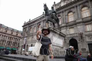 CIUDAD DE MÉXICO, 31MARZO2026.- Una pareja se toma una selfie frente al Palacio de Bellas Artes previo a su vista FOTO: GRACIELA LÓPEZ/CUARTOSCURO.COM