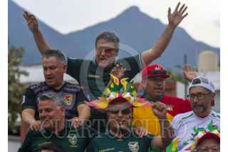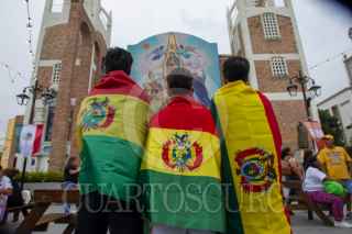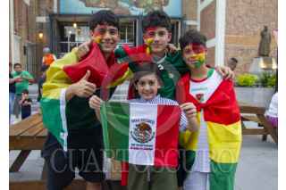 GUADALUPE, NUEVO LEÓN, 31MARZO2026.- Un grupo de bolivianos se dieron cita en la Plaza de Guadalupe previo al partido Bolivia vs Irak, el cual define quién estará dentro del Mundial 2026. Irak no participa desde el mundial México 86, mientras que Bolivia hace 32 años, en Estados Unidos 1994. FOTO: GABRIELA PÉREZ MONTIEL / CUARTOSCURO.COM
