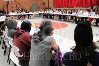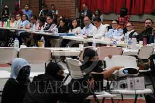 CUERNAVACA, MORELOS, 01ABRIL2026.- Segundo Diálogo entre las autoridades universitarias y la Resistencia Estudiantil UAEM. Los jóvenes universitarios demandan la desaparición de la Federación de Estudiantes Universitarios de Morelos por no representarlos además de poner en la mesa el tema del acoso entre pares y el que ejercen maestros. El Diálogo se desarrolla en el Seminario Conciliar de San José con la mediación de la Asamblea de Pueblos de Morelos. En la imagen, las autoridades universitarias encabezadas por la rectora Viridiana Aydeé León Hernandez. FOTO: MARGARITO PÉREZ RETANA/CUARTOSCURO.COM