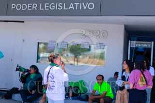 QUERÉTARO, QUERÉTARO, 01ABRIL2026.- Decenas de activistas de distintos colectivos se manifestaron en el Congreso del Estado donde se llevaba a cabo Sesión Ordinaria del Pleno de la LXI Legislatura para elegir la nueva mesa directiva. Los colectivos manifestaron su inconformidad ante los retrasos de políticas públicas en materia de movilidad, despenalización del aborto, derecho al agua, derechos humanos. FOTO: CÉSAR GÓMEZ/CUARTOSCURO.COM