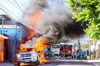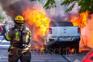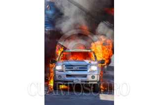 SALTILLO, COAHUILA, 03ABRIL2026.- Un voraz incendio de dos vehículos se reportó tras una supuesta falla en los cables de alta tensión de las calles de la colonia Chapultepec en la ciudad de Saltillo. FOTO: ALEJANDRO RODRÍGUEZ/CUARTOSCURO.COM