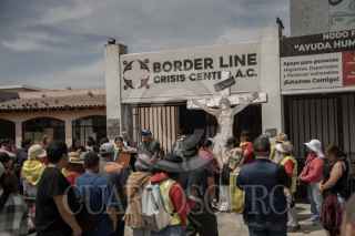 TIJUANA, BAJA CALIFORNIA, 03ABRIL2016.- Activistas y personas en contexto de movilidad realizaron el Viacrucis Migrante 2026 en la Zona Centro de Tijuana, una representación simbólica del difícil trayecto que enfrentan quienes abandonan sus países en busca de mejores oportunidades. La actividad inició con un recorrido del Arco Monumental sobre la avenida Revolución hacia Plaza Viva Tijuana, donde participantes escenificaron las estaciones del viacrucis para reflejar problemáticas. FOTOS: OMAR MARTÍNEZ / CUARTOSCURO.COM