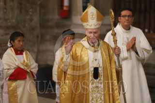 CIUDAD DE MÉXICO, 06ABRIL2026.- Durante la Misa del Domingo de Resurrección en la Catedral Metropolitana, se agradeció por parte de la iglesia al empresario Victor Manuel González Torres "Dr. Simi" por el apoyo que brindo para la limpieza y rehabilitación del Retablo de los Reyes, que ya presentaba problemas por la acumulación de polvo y humo. FOTO: DANIEL AUGUSTO/ CUARTOSCURO.COM