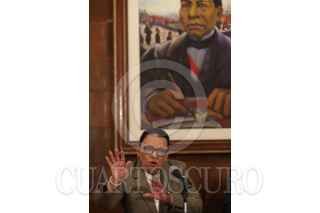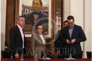 CIUDAD DE MÉXICO, 06ABRIL2026.- Rosa Icela Rodríguez, secretaria de Gobernación, acompañada de autoridades, durante una conferencia de prensa en donde informaron el avance de los bloqueos de los transportistas en diferentes casetas del país. El acto se realizó en las inmediaciones de esta dependencia. FOTO: GRACIELA LÓPEZ/CUARTOSCURO.COM