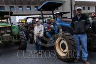 CALERA, ZACATECAS, 06ABRIL2026.- Productores de la Asociación de Usuarios de Pozos de Riego de Zacatecas y quienes forman parte organización campesina Frente Nacional para el Rescate del Campo Mexicano (FNRCM), se manifestaron a las puertas de la compañía cervecera Grupo Modelo-AB Inveb, quien produce 19 millones de botellas de cerveza al día, 40 por ciento del total nacional; como parte de las acciones convocadas para el Paro Nacional. Transportistas y contratistas de la propia empresa cervecera, intentaron inhibir la manifestación bloqueando con trailers los accesos a la fábrica. Después de unos minutos de tensión y discusiones, los campesinos se trasladaron a la caseta de cobro “Calera” para tomar de manera pacífica y dar paso libre a todo tipo de vehículos. FOTO: ADOLFO VLADIMIR /CUARTOSCURO.COM