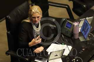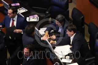CIUDAD DE MÉXICO, 07ABRIL2026.- Los senadores Andrea Chávez e Ignacio Mier se saludaron durante la Sesión Ordinaria en el Senado de la República. FOTO: GRACIELA LÓPEZ/CUARTOSCURO.COM