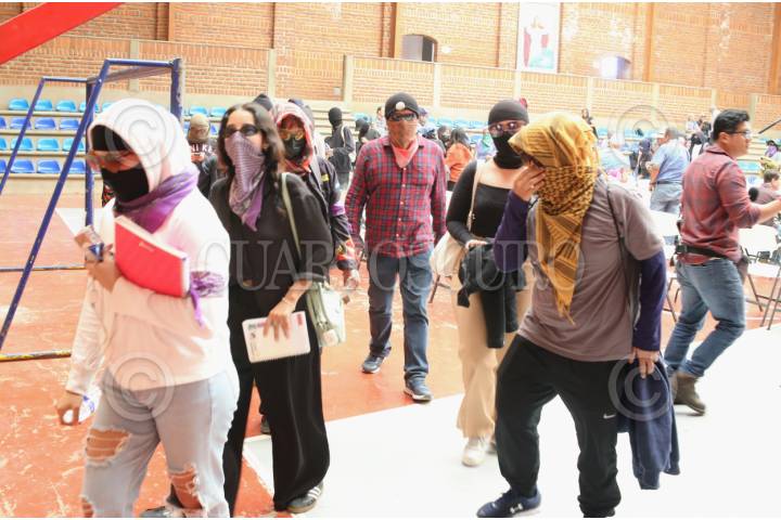 CUERNAVACA, MORELOS, 08ABRIL2026.- Estudiantes de la Resistencia Estudiantil UAEM durante el diálogo que sostiene con autoridades universitarias encabezadas por la rectora Viridiana Aydeé León Hernández. Los estudiantes universitarios existen avances en la solución del pleito petitorio que presentaron. FOTO: MARGARITO PÉREZ RETANA/CUARTOSCURO.COM