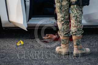 CULIACÁN, SINALOA, 09ABRIL2026.- Dos hombres fueron acribillados a balazos cuando viajaban a bordo de un vehículo Mazda blanco en las inmediaciones de la Caseta Cuatro. El ataque armado ocurrió sobre la avenida Madero y la Calzada Militar, donde se registra un fuerte congestionamiento vial debido al despliegue de corporaciones policiacas y peritos que realizan las diligencias correspondientes. FOTO: JOSÉ BETANZOS ZÁRATE/CUARTOSCURO.COM