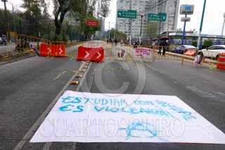 CIUDAD DE MÉXICO, 10ABRIL2026.- Estudiantes de la Facultad de Filosofía realizaron un bloqueo sobre Avenida Insurgentes a la altura de Conagua dirección norte, para exigir a las autoridades de la Universidad Autónoma de México la implementación de comedores estudiantiles. FOTO: ROGELIO MORALES/CUARTOSCURO.COM
