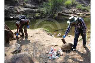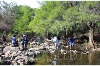 TEMIXCO, MORELOS, 11ABRIL2026.- Integrantes de los colectivos Guardianes del Territorio, Bitácora Salvaje y Programa de Aves Urbanas Xochitepec, participaron en la actividad Voces del Rio, una jornada de limpieza del rio Colotepec y la cascada de Bedoya. Durante la Semana Santa muchas personas acudieron a nadar en las pozas de este rio y dejaron mucha basura. A la actividad acudieron familias con pequeños que después de la actividad de limpieza se dieron un chapuzón en la poza que esta bajo la cascada que se abre paso entre piedra volcánica. FOTO: MARGARITO PEREZ RETANA/CUARTOSCURO.COM
