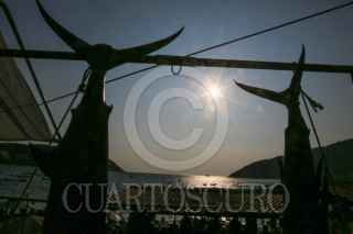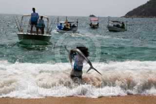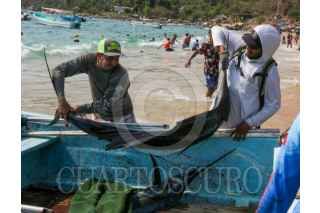 ACAPULCO, GUERRERO, 12ABRIL2026.- El Torneo de Pez Vela Calentona 2026 formó parte de las actividades de la Feria Regional de Puerto Marqués, un destino popular entre los turistas por su bahía cerca del puerto de Acapulco, a donde acuden miles de visitantes para disfrutar de sus vacaciones. La justa comenzó a las 8 de la mañana con decenas pescadores que partieron en sus embarcaciones rumbo a altamar para lograr capturas con mayor peso y clasificar entre los primeros lugares del torneo. Entre los premios que se entregan son automóviles, motonetas, motores para embarcaciones, y dinero en efectivo, pero su principal propósito es fomentar la convivencia sana dentro de esa comunidad. FOTO: CARLOS ALBERTO CARBAJAL/CUARTOSCURO.COM