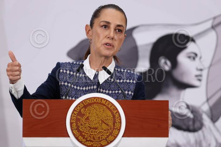 CIUDAD DE MÉXICO, 14ABRIL2026.- Claudia Sheinbaum Pardo, presidenta de México, encabezó la conferencia Mañanera del Pueblo, desde Palacio Nacional, en la que se ofreció el informe de seguridad, así cómo el anuncio de la Escuela de Mandos para la coordinación de la estrategia de seguridad en el país. FOTO: GALO CAÑAS/CUARTOSURO.COM