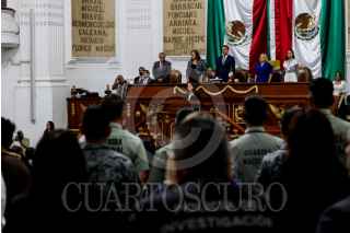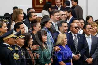 CIUDAD DE MÉXICO, 14ABRIL2026.- Bertha Alcalde Luján, fiscal general de Justicia de la Ciudad de México, y Pablo Vázquez, secretario de Seguridad Ciudadana, se fotografiaron con elementos condecorados durante la sesión solemne por la entrega de la “Medalla al Mérito Policial” en el Congreso de la Ciudad de México. FOTO: GALO CAÑAS/CUARTOSCURO.COM