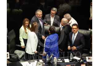 CIUDAD DE MÉXICO, 14ABRIL2026.- Rosa Icela Rodríguez, secretaría de Gobernación; Ernestina Godoy, Fiscal General de justicia; Laura Itzel Castillo Juárez, presidenta de la Cámara de senadores y los coordinadores de partidos encabezaron la Ceremonia de la Inauguración del Salón Ing. Roberto Castillo Martinez que se llevó a cabo en la Cámara de Senadores. FOTO: ANDREA MURCIA /CUARTOSCURO.COM
