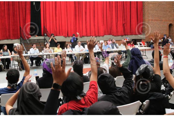 CUERNAVACA, MORELOS, 16ABRIL2026.- Tercera mesa de trabajo entre las autoridades universitarias y la Resistencia Estudiantil UAEM. Esta representación estudiantil exigió a las autoridades su reconocimiento en la Ley Orgánica de la Universidad Autónoma del Estado de Morelos, con un presupuesto y atribuciones como la actual Federación de Estudiantes Universitarios de Morelos FEUM. FOTO: MARGARITO PÉREZ RETANA/CUARTOSCURO.COM