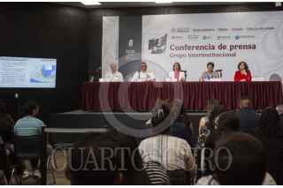 CIUDAD DE MÉXICO, 16ABRIL2026.- Víctor Rodríguez Padilla, director general de Pemex; Raymundo Pedro Morales Ángeles, secretario de Marina; Luz Elena González Escobar, secretaria de Energía; Marina Robles García, secretaria de biodiversidad y restauración ambiental, y Rosaura Ruiz Gutiérrez, secretaria de Ciencia, Humanidades, Tecnología e Innovación, ofrecieron una conferencia de prensa en la SENER. Informaron que se inició una investigación para esclarecer el origen del derrame de hidrocarburo en el Golfo de México y que tres servidores públicos fueron separados de sus funciones. FOTO: ANDREA MURCIA /CUARTOSCURO.COM