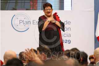 CIUDAD DE MÉXICO, 17ABRIL2026.- Omar García Harfuch, secretario de Seguridad Pública y Protección Ciudadana, y Ricardo Trevilla Trejo, secretario de la Defensa Nacional, durante la presentación del Plan General de Procuración de Justicia 2026-2029 frente a representantes de los tres órdenes de gobierno, así como gobernadoras y gobernadores de la República. FOTO: GALO CAÑAS/CUARTOSURO.COM