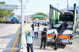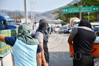 CHILPANCINGO, GUERRERO, 17ABRIL2026.- Cerca de 30 egresados de la Escuela Normal Rural 'Raúl Isidro Burgos' de Ayotzinapa bloquearon durante dos horas la Autopista del Sol en Chilpancingo, utilizando vehículos de carga para cerrar totalmente la circulación en el Parador del Marqués. La movilización tuvo como objetivo presionar a la Secretaría de Educación Guerrero (SEG) por la falta de respuesta ante la asignación de 20 plazas docentes, cuyos exámenes de idoneidad fueron aprobados desde marzo del año pasado sin que hasta la fecha existan avances claros. A pesar de la intervención de funcionarios estatales para establecer un diálogo, los manifestantes denunciaron que las autoridades han pospuesto las mesas de negociación de manera sistemática. Tras mantener el cierre de los cuatro carriles y las laterales de la carretera federal por un lapso de dos horas, los jóvenes liberaron la vía alrededor de las 18:00 horas, permitiendo que el flujo vehicular hacia Acapulco y la Ciudad de México regresara a la normalidad. FOTO: DASSAEV TÉLLEZ ADAME/CUARTOSCURO.COM