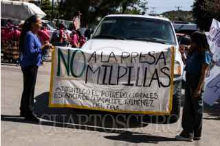 JIMÉNEZ DEL TEUL, ZACATECAS, 19ABRIL2026.- Habitantes de comunidades, ejidos y la cabecera municipal y de Sombrerete, quienes forman parte del Movimiento en Defensa del Territorio y del Río Atenco, realizaron este viernes una “Reunión Pública de los Pueblos” en rechazo al proyecto de la presa Milpillas, megaproyecto hídrico que consideran una amenaza a su supervivencia y al equilibrio ecológico de la región. La reunión, realizada en el municipio por donde cruza el río Atenco, se llevó a cabo en respuesta a la convocatoria emitida por la Secretaría de Medio Ambiente y Recursos Naturales (Semarnat) para celebrar el encuentro oficial en Sombrerete, Zacatecas, una decisión que el movimiento calificó como un acto de “discriminación” y “simulación institucional” que vulnera su derecho a una participación efectiva y significativa de los pueblos afectados. La Manifestación de Impacto Ambiental (MIA) del proyecto, según investigadores de la Universidad Autónoma de Zacatecas (UAZ) revela que la presa desviaría el 92?l caudal del río, trasladando la crisis hídrica a uno de los municipios más pobres del estado, mientras el agua se destinaría prioritariamente a “actividades industriales y productivas”. El Movimiento en Defensa del Territorio y del Río Atenco concluyó su jornada con una marcha por las principales calles del municipio y una visita al afluente en la comunidad de Atotonilco, reafirmando que su lucha no es por una compensación económica, sino por la defensa del derecho a la vida y la permanencia en su territorio. FOTO: ADOLFO VLADIMIR /CUARTOSCURO.COM