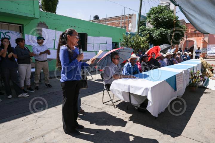 JIMÉNEZ DEL TEUL, ZACATECAS, 19ABRIL2026.- Habitantes de comunidades, ejidos y la cabecera municipal y de Sombrerete, quienes forman parte del Movimiento en Defensa del Territorio y del Río Atenco, realizaron este viernes una “Reunión Pública de los Pueblos” en rechazo al proyecto de la presa Milpillas, megaproyecto hídrico que consideran una amenaza a su supervivencia y al equilibrio ecológico de la región. La reunión, realizada en el municipio por donde cruza el río Atenco, se llevó a cabo en respuesta a la convocatoria emitida por la Secretaría de Medio Ambiente y Recursos Naturales (Semarnat) para celebrar el encuentro oficial en Sombrerete, Zacatecas, una decisión que el movimiento calificó como un acto de “discriminación” y “simulación institucional” que vulnera su derecho a una participación efectiva y significativa de los pueblos afectados. La Manifestación de Impacto Ambiental (MIA) del proyecto, según investigadores de la Universidad Autónoma de Zacatecas (UAZ) revela que la presa desviaría el 92?l caudal del río, trasladando la crisis hídrica a uno de los municipios más pobres del estado, mientras el agua se destinaría prioritariamente a “actividades industriales y productivas”. El Movimiento en Defensa del Territorio y del Río Atenco concluyó su jornada con una marcha por las principales calles del municipio y una visita al afluente en la comunidad de Atotonilco, reafirmando que su lucha no es por una compensación económica, sino por la defensa del derecho a la vida y la permanencia en su territorio. FOTO: ADOLFO VLADIMIR /CUARTOSCURO.COM