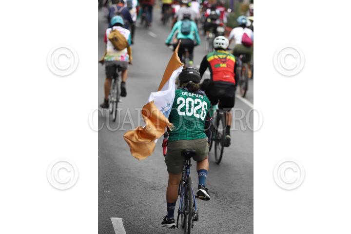CIUDAD DE MÉXICO, 19ABRIL2026.- Un ciclista que llevaba un jersey de la selección mexicana de fútbol y con el dorsal "Despojo 2026" haciendo referencia a la Copa del Mundo. FOTO: DANIEL AUGUSTO/ CUARTOSCURO.COM