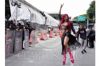 CIUDAD DE MÉXICO, 19ABRIL2026.- Integrantes del colectivo de trabajadoras sexuales “Trasuix” realizaron una protesta en las inmediaciones del Metro Chabacano, a modo de boicot por la inauguración de la ciclovía Tenochtitlán. Afirmaron que las obras en Calzada de Tlalpan han provocado el desplazamiento de quienes laboran en la zona, afectando su economía, priorizando a los usuarios extranjeros que acudirán al Mundial 2026. En la imagen la activista Transexual Carolina “La morena de fuego”. FOTO: CAMILA AYALA BENABIB / CUARTOSCURO.COM