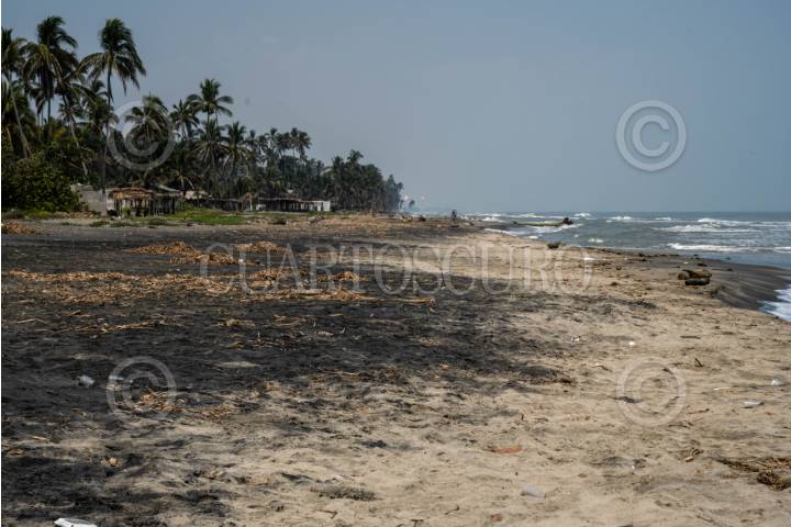 PARAISO, TABASCO, 19ABRIL2026.- A medida que las corrientes del Golfo de México desplazan los residuos derivados de la fuga en el activo Abkatún-Pol-Chuc (Sonda de Campeche), las playas aledañas a la Refinería Dos Bocas presentan acumulaciones de sedimentos oscuros. En este sector de Tabasco, la presencia de estos elementos coincide con los reportes de vertidos de hidrocarburos detectados desde febrero de 2026. FOTO: ISABEL MATEOS HINOJOSA/CUARTOSCURO.COM