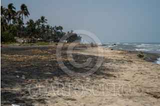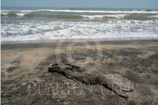PARAISO, TABASCO, 19ABRIL2026.- A medida que las corrientes del Golfo de México desplazan los residuos derivados de la fuga en el activo Abkatún-Pol-Chuc (Sonda de Campeche), las playas aledañas a la Refinería Dos Bocas presentan acumulaciones de sedimentos oscuros. En este sector de Tabasco, la presencia de estos elementos coincide con los reportes de vertidos de hidrocarburos detectados desde febrero de 2026. FOTO: ISABEL MATEOS HINOJOSA/CUARTOSCURO.COM
