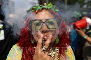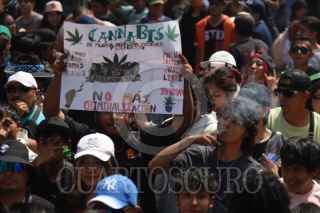 CIUDAD DE MÉXICO, 19ABRIL2026.- Este domingo en Paseo de la Reforma se llevó a cabo la celebración del Día Mundial de la Marihuana para exigir la despenalización de su uso. Decenas de demandantes acudieron a fumar marihuana en protesta de los derechos del uso de la cannabis. FOTO: GRACIELA LÓPEZ/CUARTOSCURO.COM