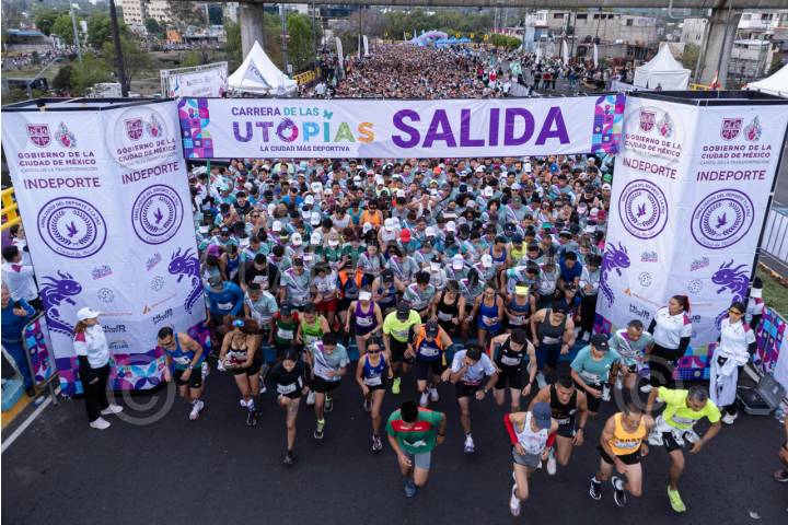 CIUDAD DE MÉXICO, 19ABRIL2026.- Se llevó a cabo la Carrera de las UTOPÍAS 8K 2026. Desde antes de las 7 de la mañana, las calles aledañas al Estadio Banorte comenzaron a llenarse de corredores que, entre estiramientos, fotografías y conversaciones se preparaban para tomar la salida. A las 7:30 horas, arrancó la competencia que, en su segunda edición, y como parte de un serial, correspondió a la letra “T”, de Transformación, reuniendo a 15 mil participantes en un recorrido de 8 kilómetros. En esta edición, la ruta se desarrolló en el circuito del Estadio Banorte. FOTO: GOBIERNO DE LA CIUDAD DE MÉXICO/CUARTOSCURO.COM