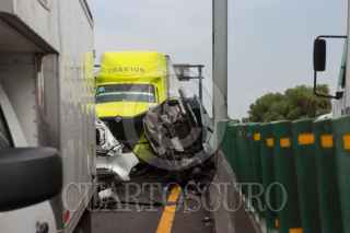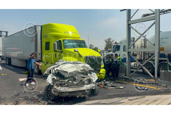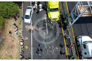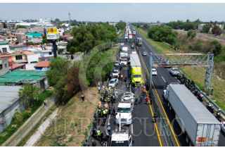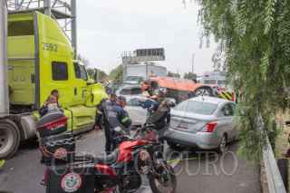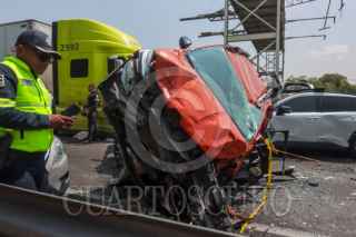 ECATEPEC, ESTADO DE MÉXICO, 20ABRIL2026.- Una carambola en donde se vieron involucrados 10 vehículos, dos de ellas unidades del servicio público de pasajeros y un tráiler, se registró en el Circuito Exterior Mexiquense (CEM), con saldo de una persona fallecida y al menos 13 lesionados. El accidente ocurrió a la altura del kilómetro 37, en la comunidad Bonito Ecatepec, en el tramo de la Macro Plaza de Tecámac y Las América en Ecatepec. Elementos de la Policía Estatal Protección Civil, Cruz Roja y paramédicos del Servicio de Urgencias del Estado de México, auxiliaron a las personas afectadas. FOTO: AXEL SÁNCHEZ/CUARTOSCURO.COM