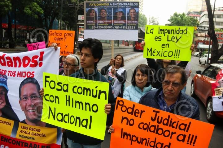 CIUDAD DE MÉXICO. 20ABRIL2026.- Mitin “Justicia por los más de 132,400 desaparecidos”, en la colonia San Angel; en la alcaldía Álvaro Obregón. Exigieron que se realicen búsquedas y acompañen a los deudos, al final fue recibida una comisión. FOTO: VICTORIA VALTIERRA/CUARTOSCURO.COM
