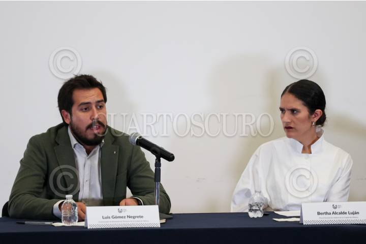 CIUDAD DE MÉXICO, 20ABRIL2026.- Luis Gómez Negrete, Comisionado de Búsqueda capitalino, y Bertha Alcalde Luján, fiscal general de Justicia de la Ciudad de México, encabezó la conferencia en que dieron detalles sobre el feminicidio de Edith Guadalupe, joven que acudió a una entrevista de trabajo y cuyo cuerpo fue encontrado en el sótano de un complejo habitacional en la alcaldía Benito Juárez. Alcalde Luján destacó que se ha separado del cargo a tres funcionarios que realizaron actos de corrupción y omisión en el proceso. FOTO: GALO CAÑAS/CUARTOSCURO.COM