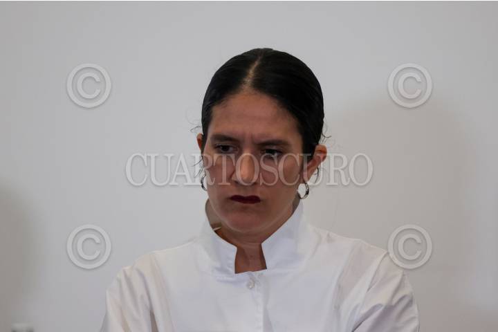 CIUDAD DE MÉXICO, 20ABRIL2026.- Bertha Alcalde Luján, fiscal general de Justicia de la Ciudad de México, encabezó la conferencia en que dieron detalles sobre el feminicidio de Edith Guadalupe, joven que acudió a una entrevista de trabajo y cuyo cuerpo fue encontrado en el sótano de un complejo habitacional en la alcaldía Benito Juárez. Alcalde Luján destacó que se ha separado del cargo a tres funcionarios que realizaron actos de corrupción y omisión en el proceso. FOTO: GALO CAÑAS/CUARTOSCURO.COM